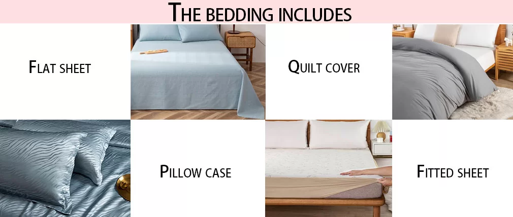 Flat Sheet + Fitted sheet + Pillowcase + Duvet Cover